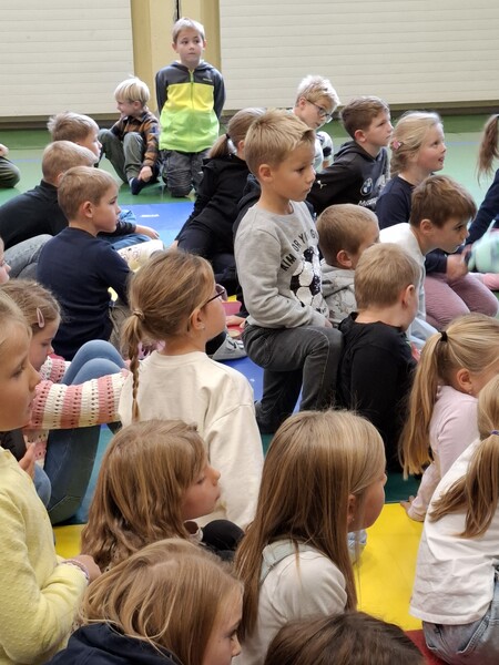 Zur heutigen Lesung waren nicht nur die 56 Schulkinder, sondern auch die 2 Praktikantinnen und 3 Lesepatinnen eingeladen. Eine spannende Stunde mit Lesen, Theater, Musik, Fragen....
