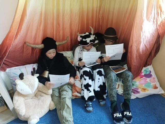 Schon am Morgen herrschte große Aufregung: Alle Schülerinnen und Schüler kamen verkleidet als Kasmandl, Bauer, Sennerin, Kranzkuh … und sorgten für eine fröhliche Atmosphäre. Den ganzen Vormittag über wurde gesungen, gebastelt und an vielen spannenden Stationen gearbeitet. Natürlich durfte auch eine Kasmandl-Sage nicht fehlen. Mit viel Begeisterung trugen die Kinder außerdem ihre Gedichte vor – ein echtes Highlight des Tages!