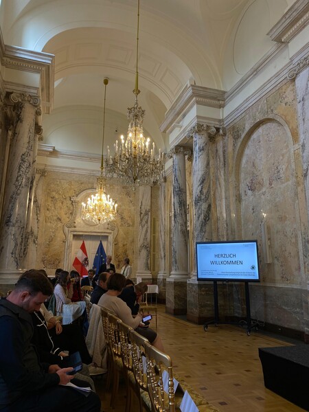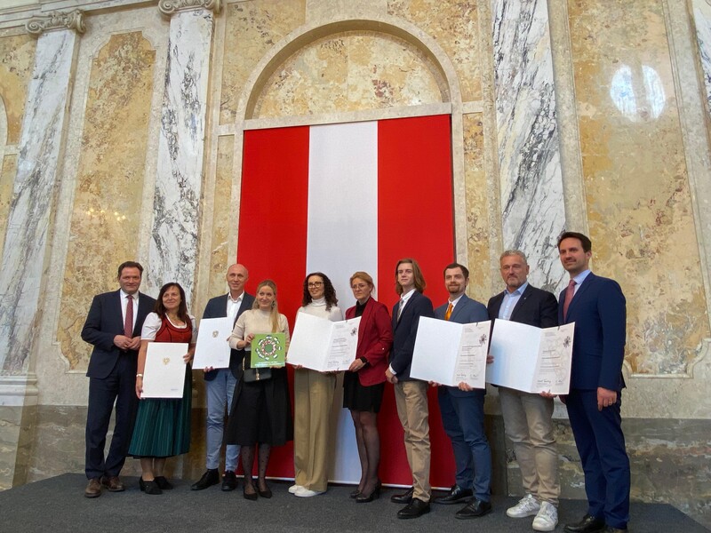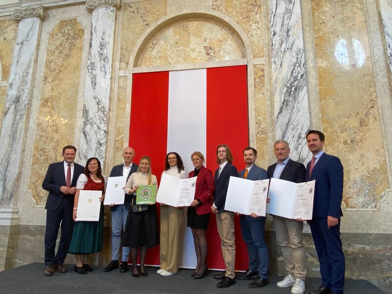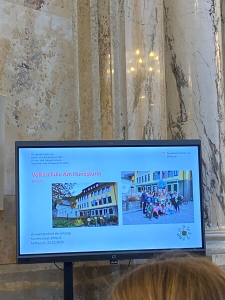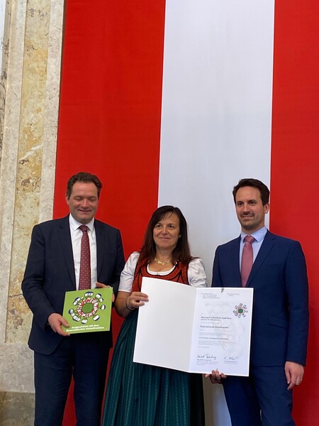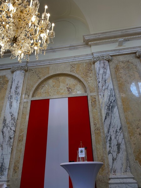 Herr BM für Bildung, Christoph Wiederkehr, und Herr BM für Umwelt und Klimaschutz, Herr Norbert Totschnig, luden in den Marmorsaal des Ministeriums zur Zertifikatsverleihung des "Umweltgütesiegels für Schulen". Ca. 50 Schulen/Kindergärten/Bildungsreinrichtungen aus ganz Österreich, davon 5 aus dem Land Salzburg waren geladen und sind der Einladung gerne gefolgt. Der Festakt wurde feierlich umrahmt und mit einem köstlichen Buffet abgeschlossen.