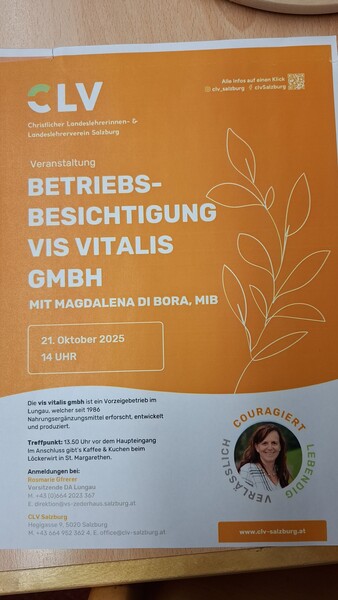 Am Dienstag, dem 21. Oktober gab es eine sehr interessante Betriebsbesichtigung bei "vis vitalis". Anschließend plauderten die ca. 20 Lehrerinnen und Lehrer bei Kaffee und Kuchen beim Löckerwirt noch angeregt weiter....